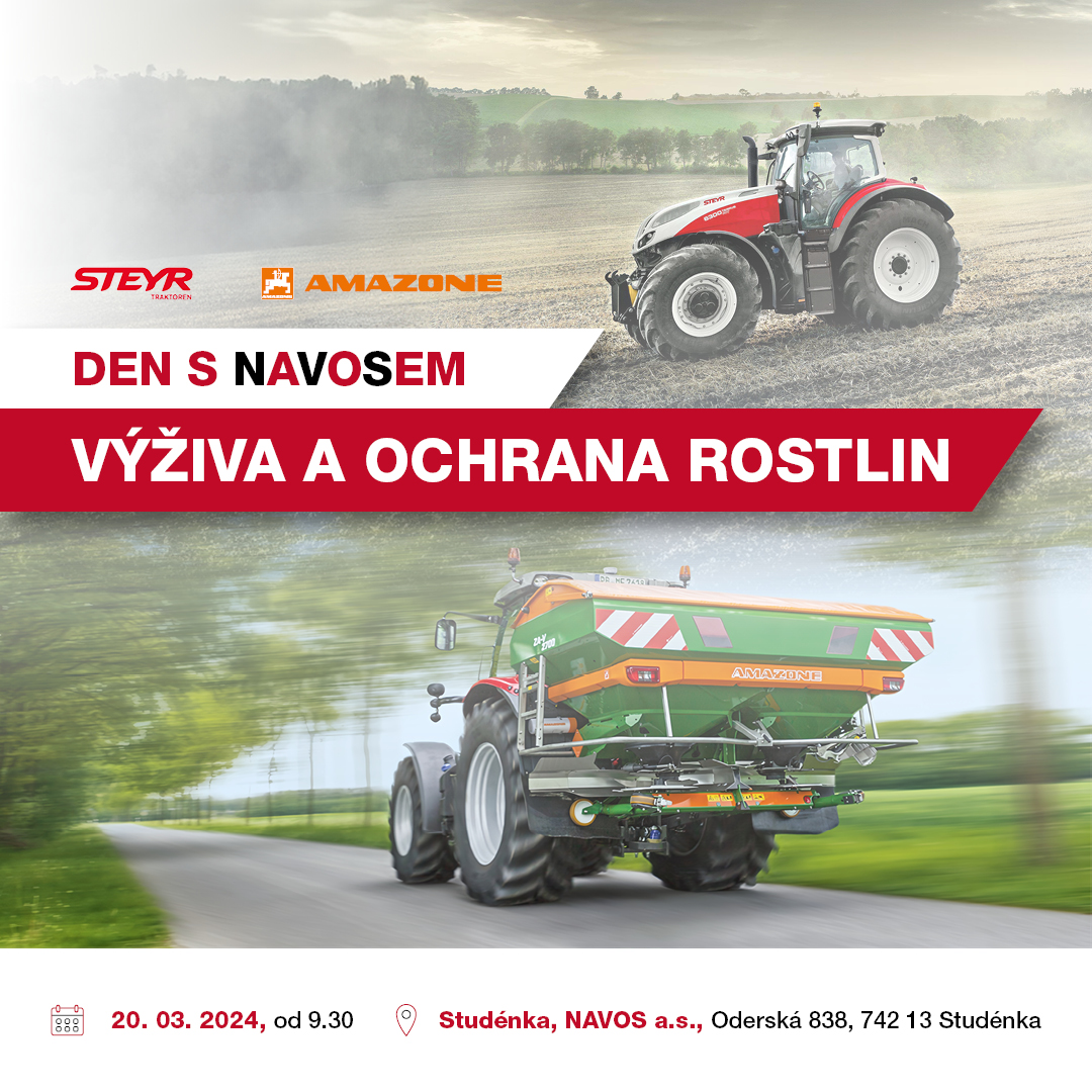 20. března 2024 od 9:30 se v areálu naší společnosti ve Studénce uskuteční DEN S NAVOSEM, který bude na téma výživa a ochrana rostlin. V příloze naleznete pozvánku, ve které zjistíte, proč to bude stát opravdu za to se za námi podívat.