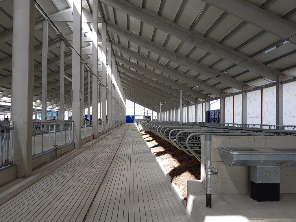 Lehací boxy jsou zastýlané separátem, kejdu vyhrnují řetězové lopaty – systém Delta. Napájecí žlaby jsou vyhřívané. Na stáj navazuje skladovací jímka na kejdu s kapacitou 8.140 m3.